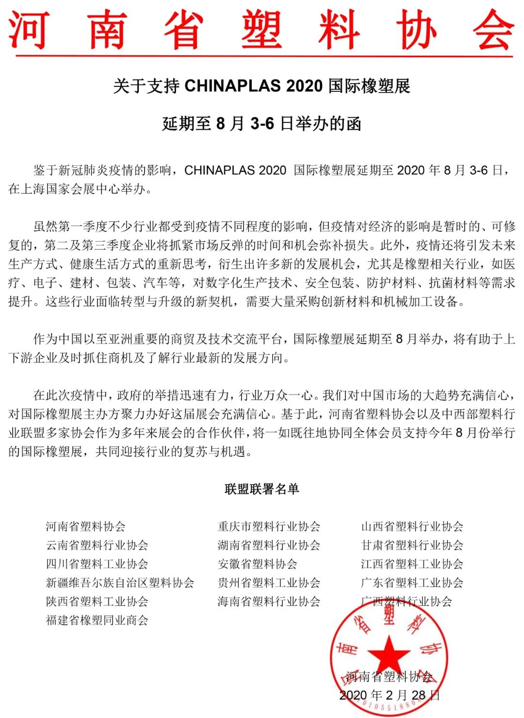 我们多家协会将一如既往地协同全体会员企业支持今年8月份举行的国际橡塑展,共同迎接行业的复苏与机遇!